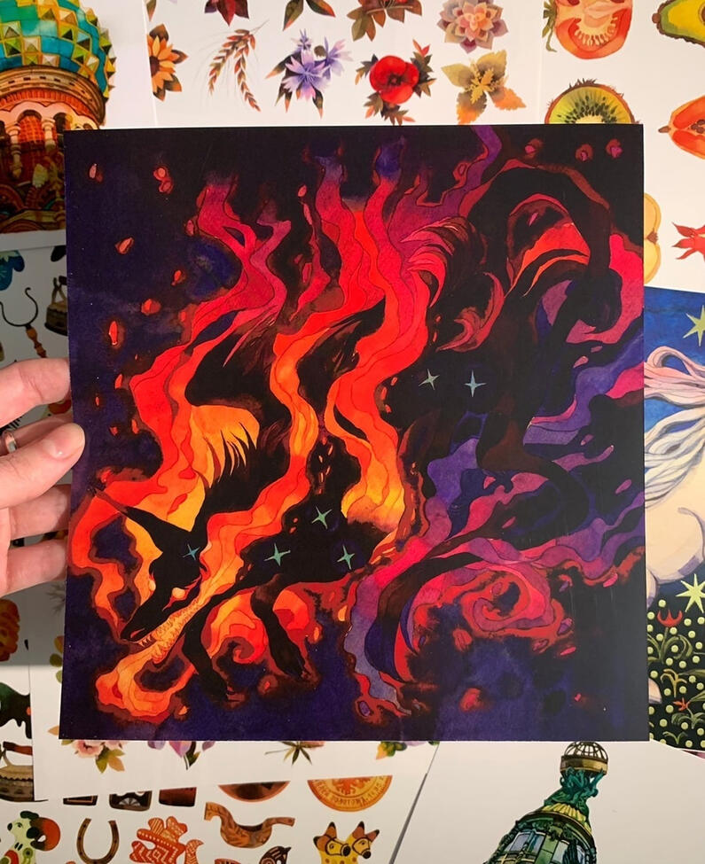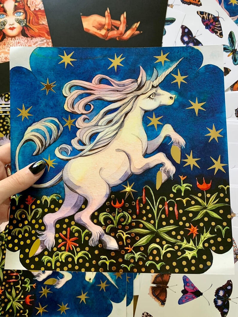 Poster "Unicorn" with gilding elements 21х21.5 cm - 7$